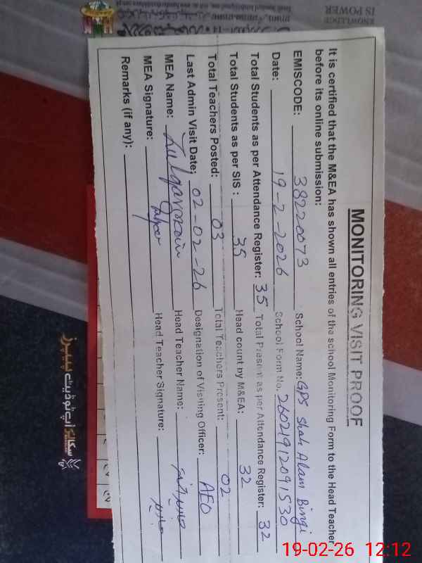| EMIS Code: 38220073 | Name of School: GPS SHAH ALAM BINGI | |||