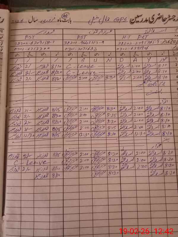 | Name: As**** Ul**** Designation: (School Headmaster's/Headmistress's) PST Phone/Cell Number: 03**** |