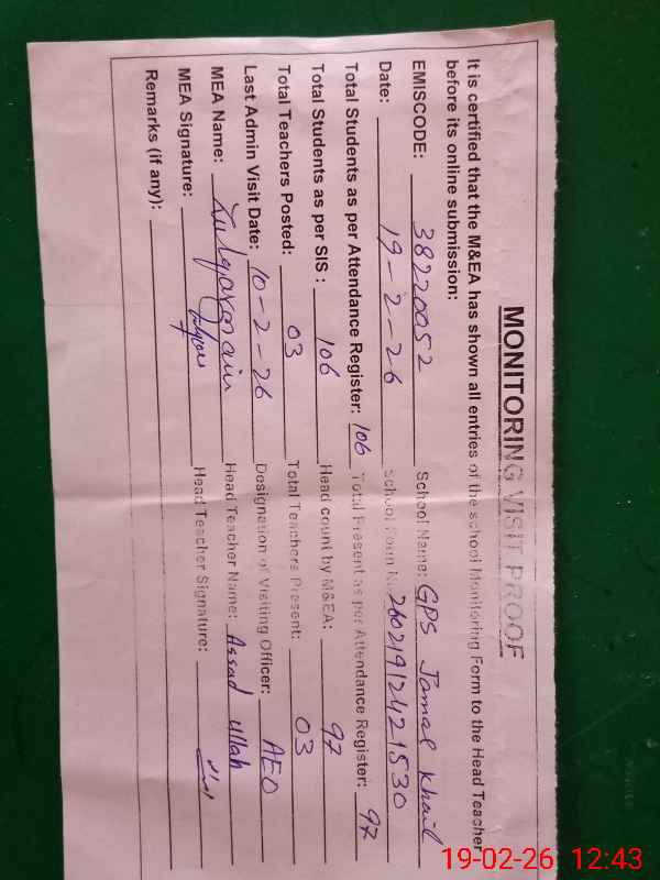 | EMIS Code: 38220052 | Name of School: GPS JAMAL KHAIL | |||