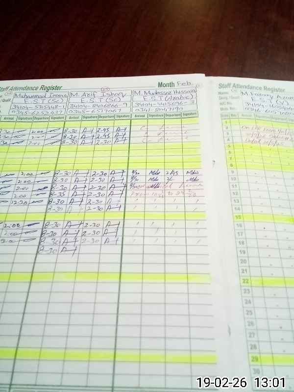| Name: Ab**** Wa**** Ak**** Designation: (School Headmaster's/Headmistress's) Principal Phone/Cell Number: 03**** |
