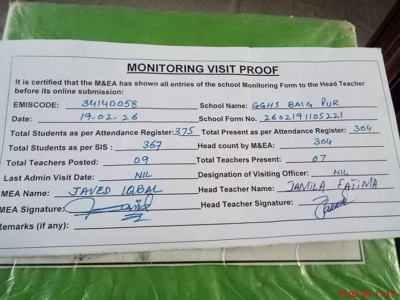 | EMIS Code: 34140058 | Name of School: GGHS BAIG PUR | |||