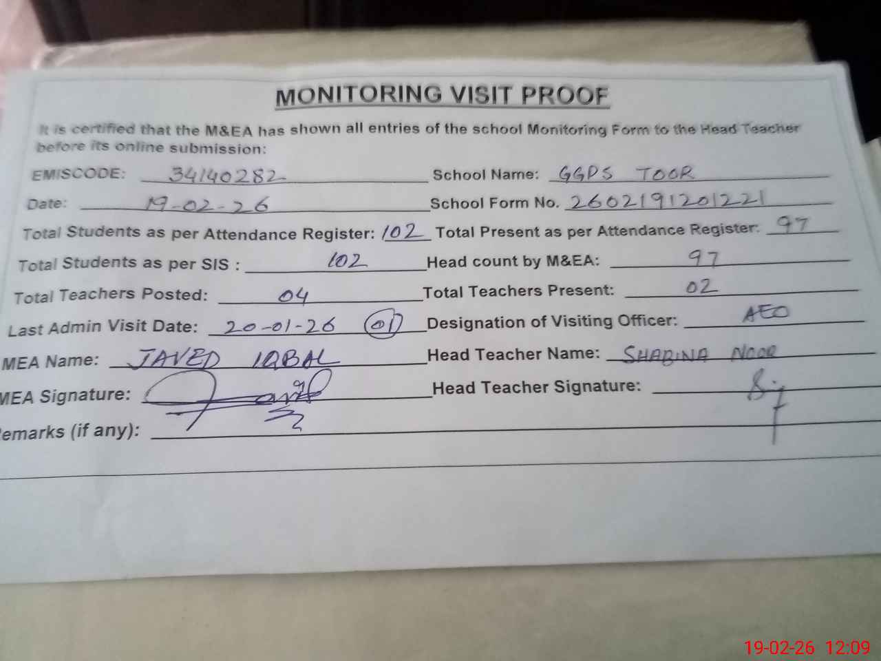 | EMIS Code: 34140282 | Name of School: GGPS TOOR | |||