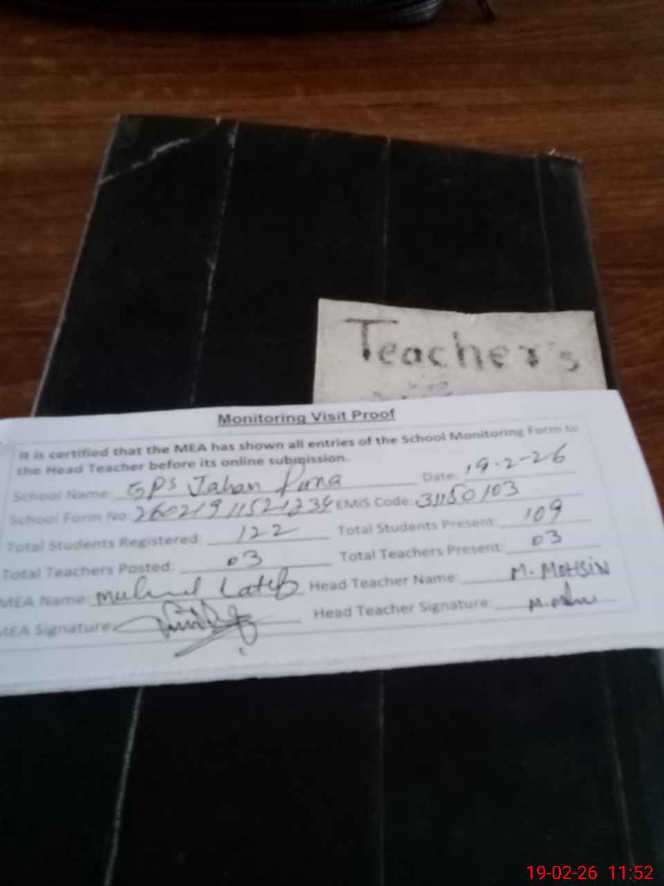 | EMIS Code: 31150103 | Name of School: GPS JAHAN PURA | |||