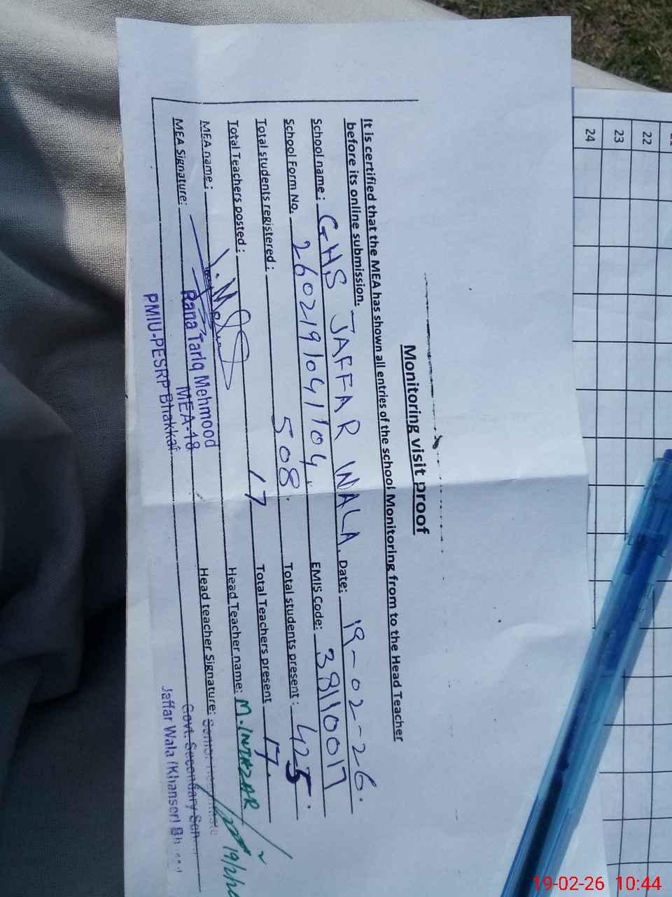| EMIS Code: 38110017 | Name of School: GHS JAFAR WALA | |||