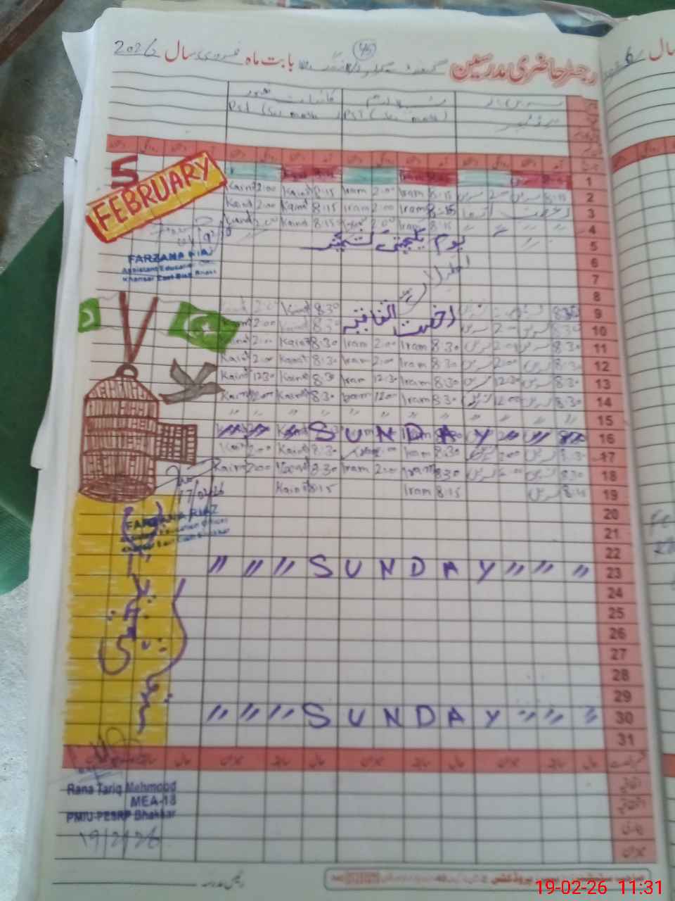 | CNIC | Full Name | Designation | R/C | Absence During Last Calender Month |