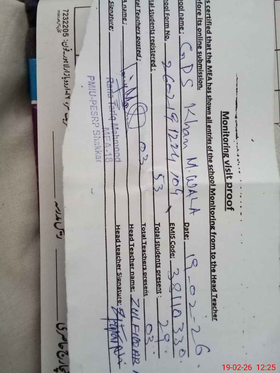 | EMIS Code: 38110330 | Name of School: GPS KHAN MUHAMMAD WALA | |||
