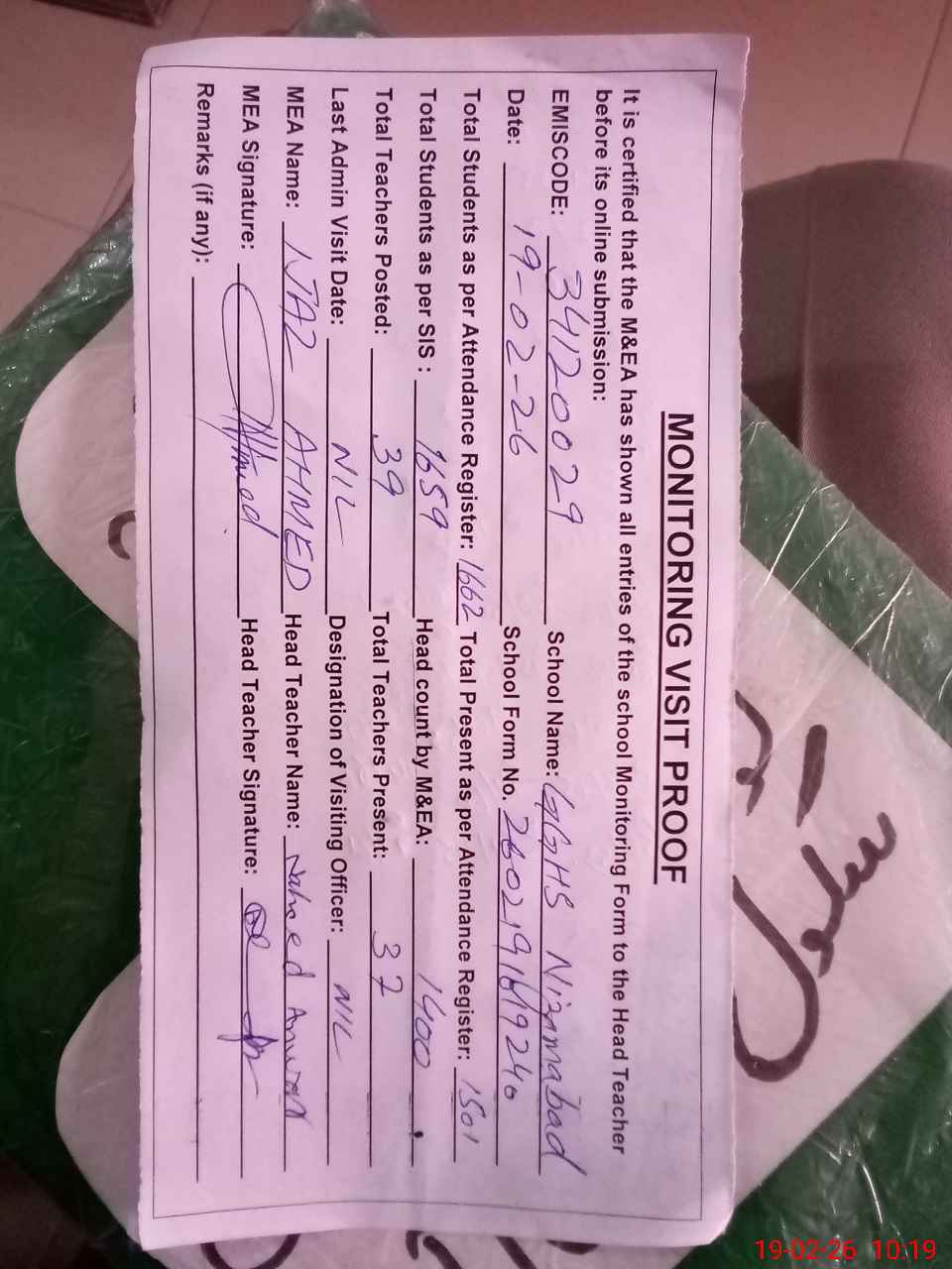 | EMIS Code: 34120029 | Name of School: GGHS NIZAM ABAD | |||