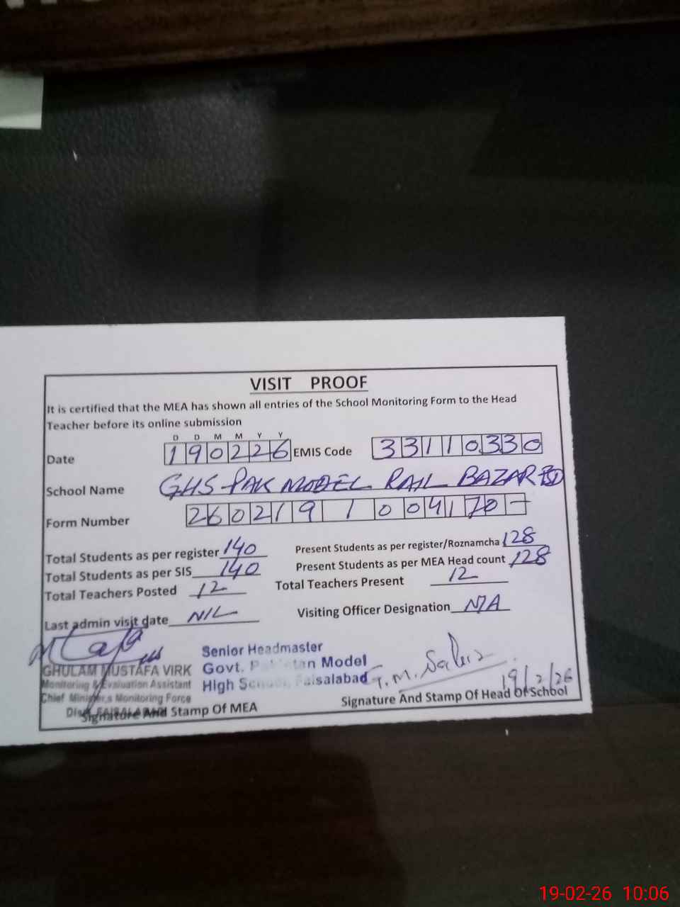 | EMIS Code: 33110330 | Name of School: GHS PAK MODEL RAIL BAZAR FSD | |||