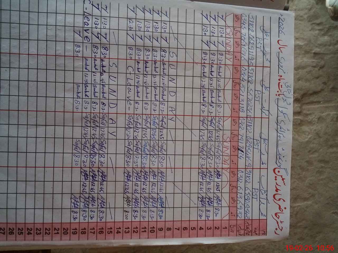 | CNIC | Full Name | Designation | R/C | Absence During Last Calender Month |