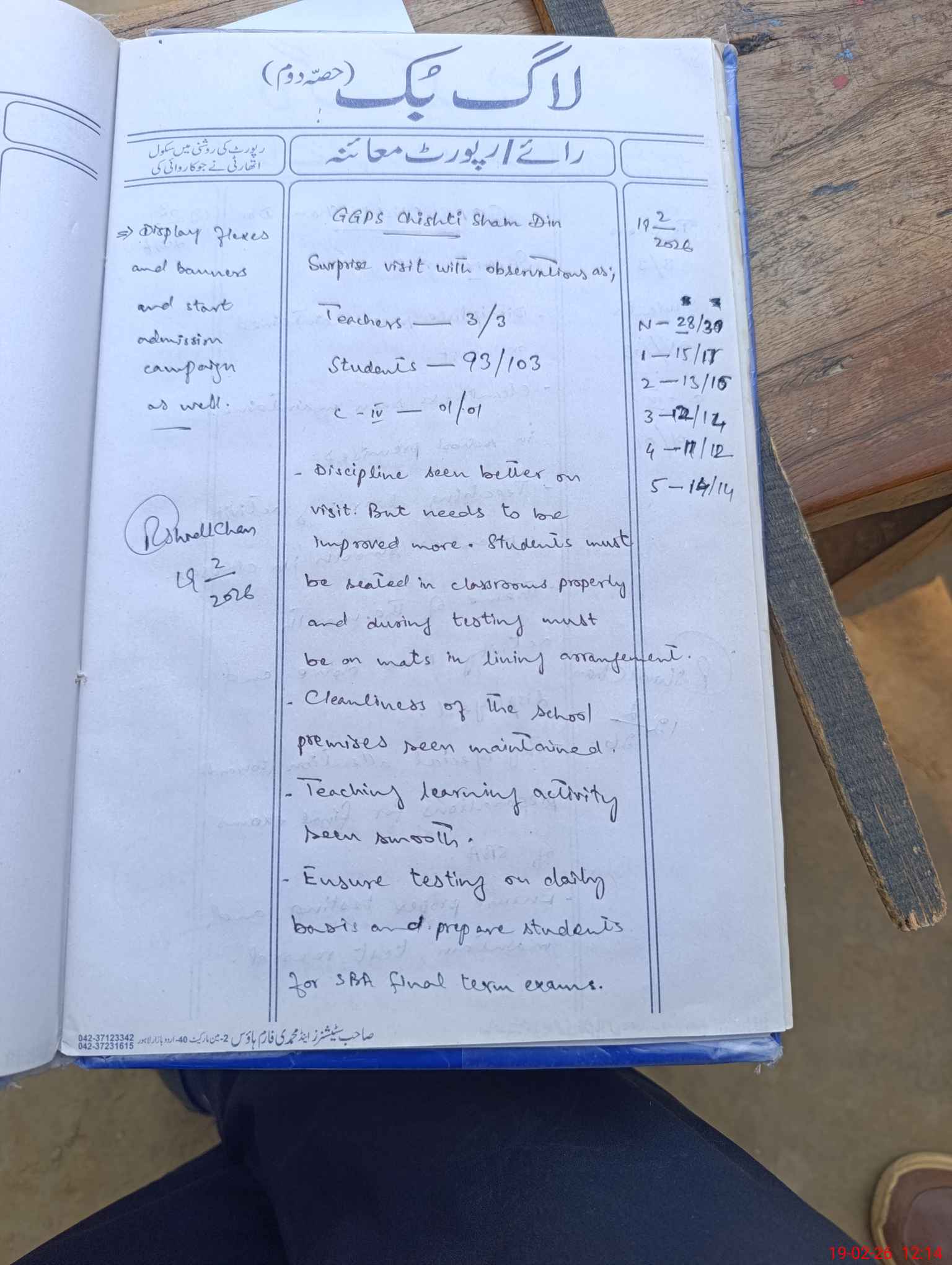 | Attendance Register | Head Teacher | MEA with School | Visit Proof |