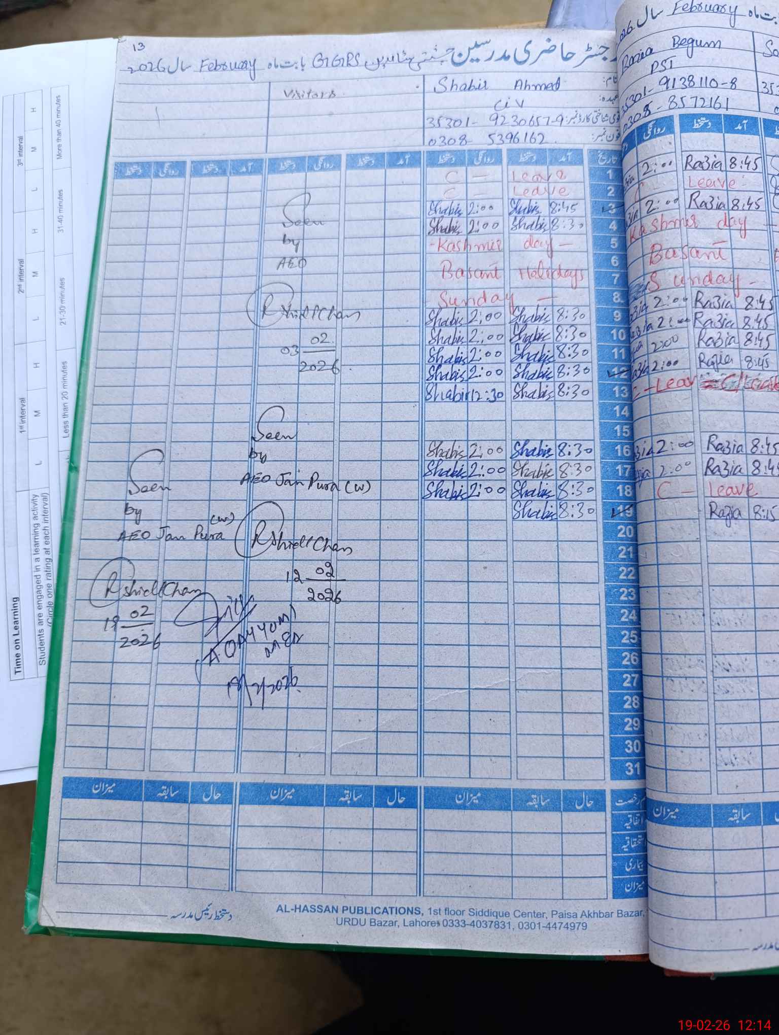 | Name: Mu**** Bi**** Designation: (School Headmaster's/Headmistress's) PST Phone/Cell Number: 03**** |
