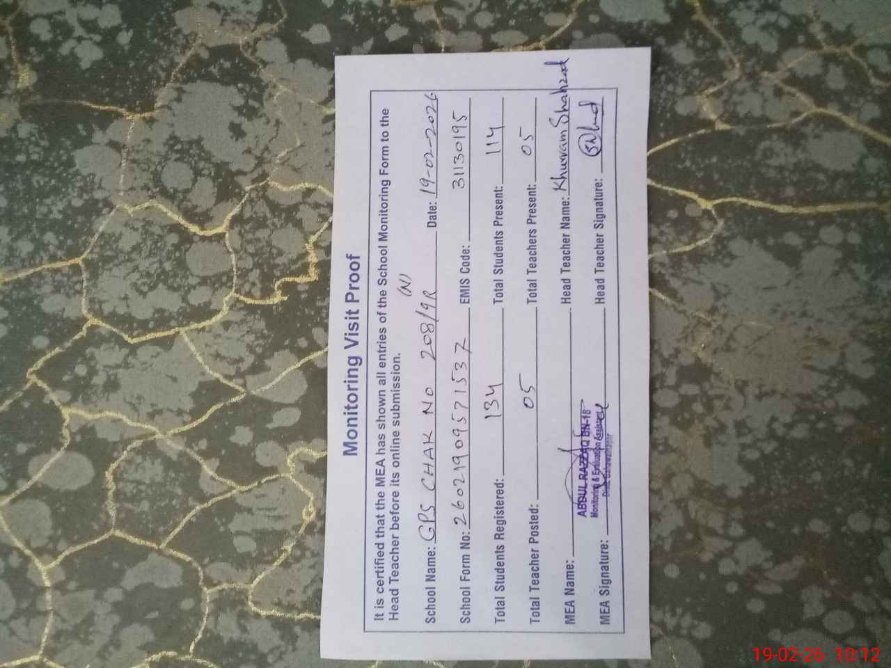 | EMIS Code: 31130195 | Name of School: GPS CHAK 208/9-R NORTH | |||