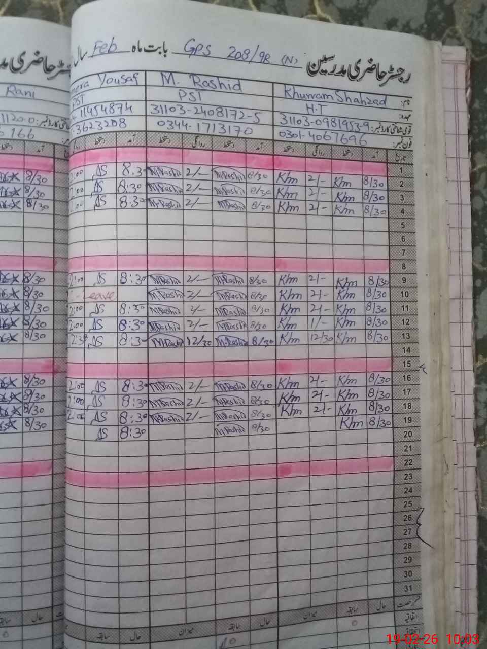 | Name: Kh**** Sh**** Designation: (School Headmaster's/Headmistress's) Pst Phone/Cell Number: 03**** |