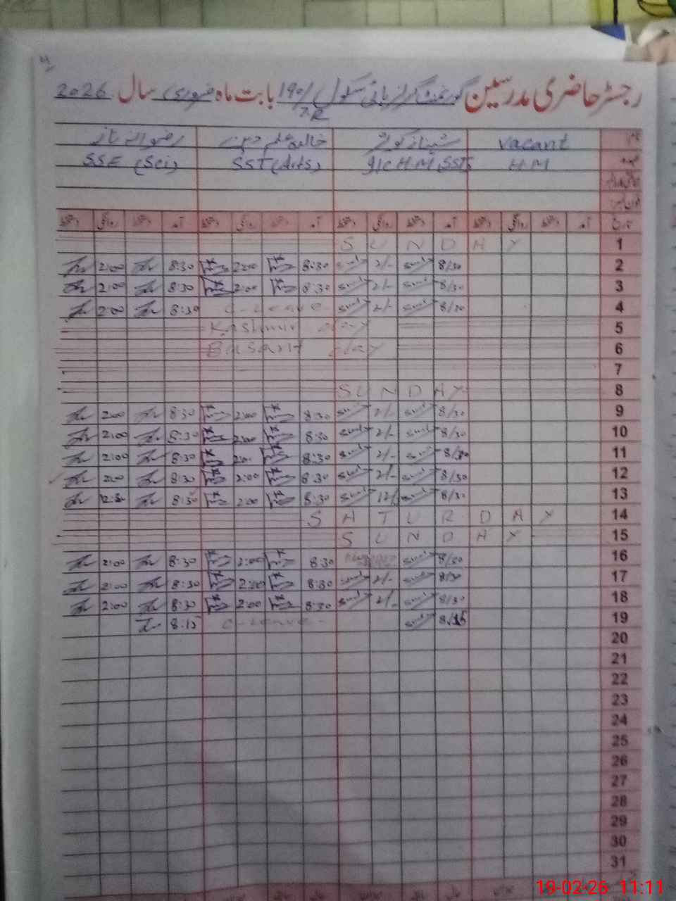 | 31**** | Ma**** Gh**** | SESE Urdu | Contract | 0 | 0 | 0 | 0 | 0 | 0 | 0 | 0 | 0 | Casual |