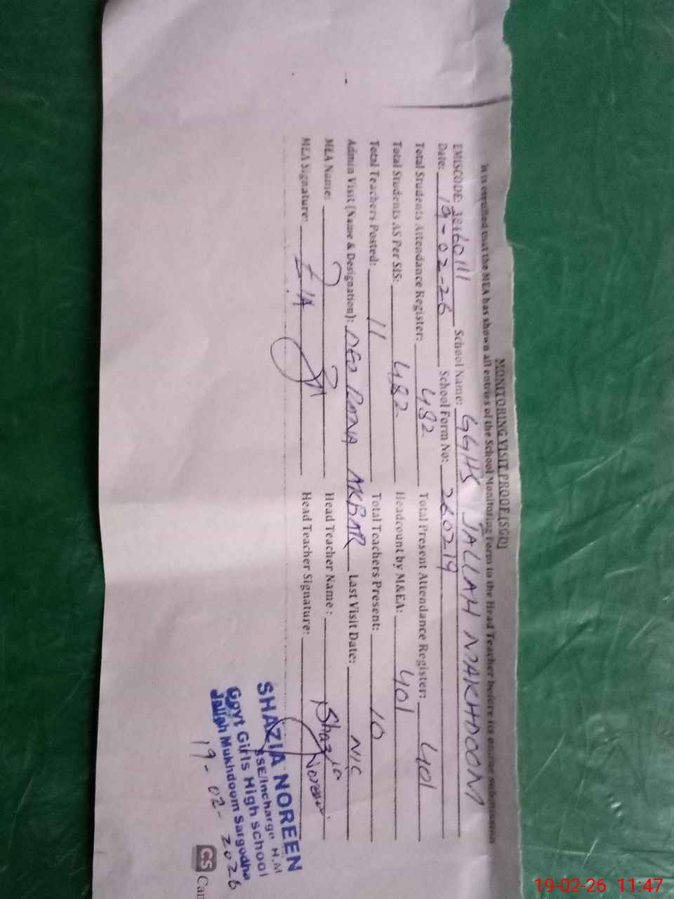| EMIS Code: 38460111 | Name of School: GGHS JALLAH MUKHDOM | |||