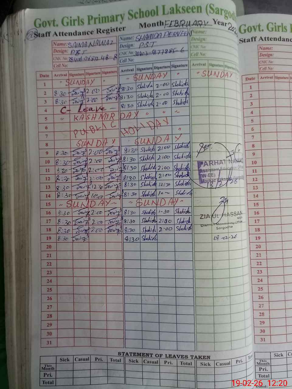 | Name: SA**** NA**** Designation: (School Headmaster's/Headmistress's) PST Phone/Cell Number: 03**** |