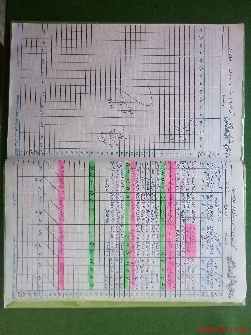 | CNIC | Full Name | Designation | R/C | Absence During Last Calender Month |