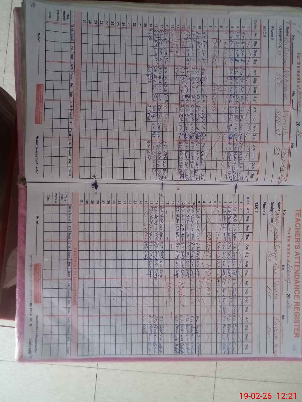| Name: RU**** KH**** Designation: (School Headmaster's/Headmistress's) SST Arts Phone/Cell Number: 03**** |