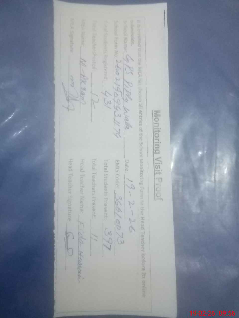 | EMIS Code: 36610073 | Name of School: GPS PIPLY WALA | |||