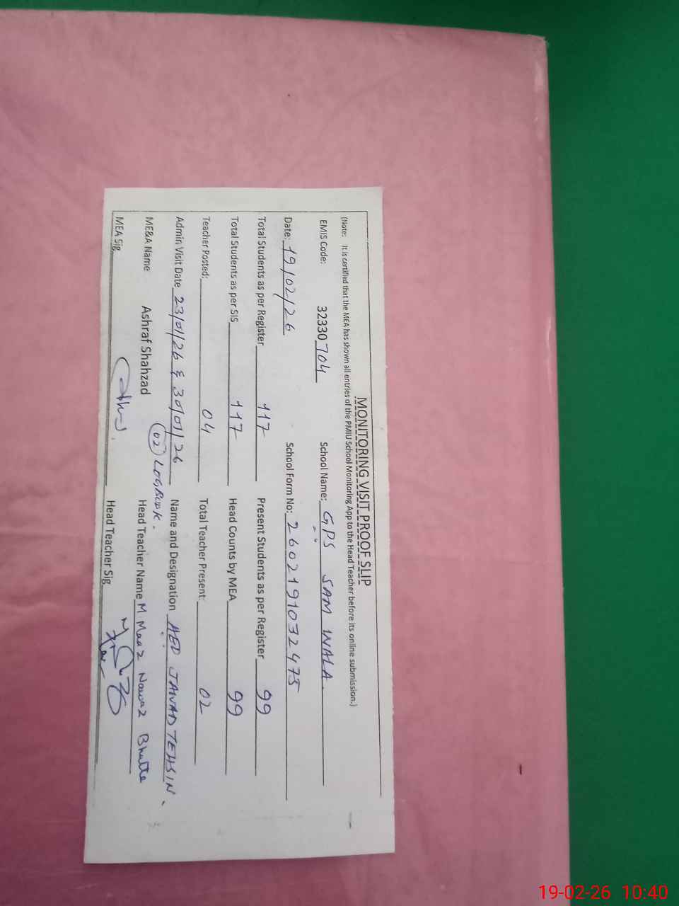 | EMIS Code: 32330704 | Name of School: GPS SAM WALA | |||