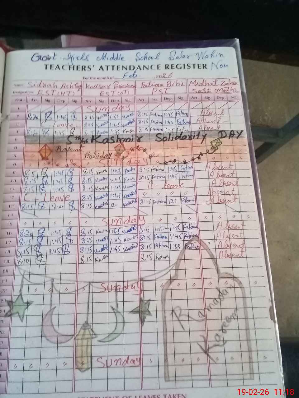 | 36**** | Mi**** Za**** | EST Maths | Regular | 0 | 0 | 31 | 0 | 0 | 0 | 0 | 0 | 0 | Absent (Un-Authorized) |