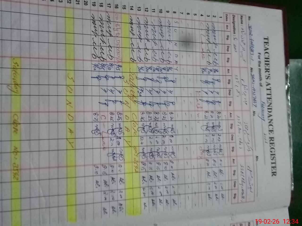 | CNIC | Full Name | Designation | R/C | Absence During Last Calender Month |