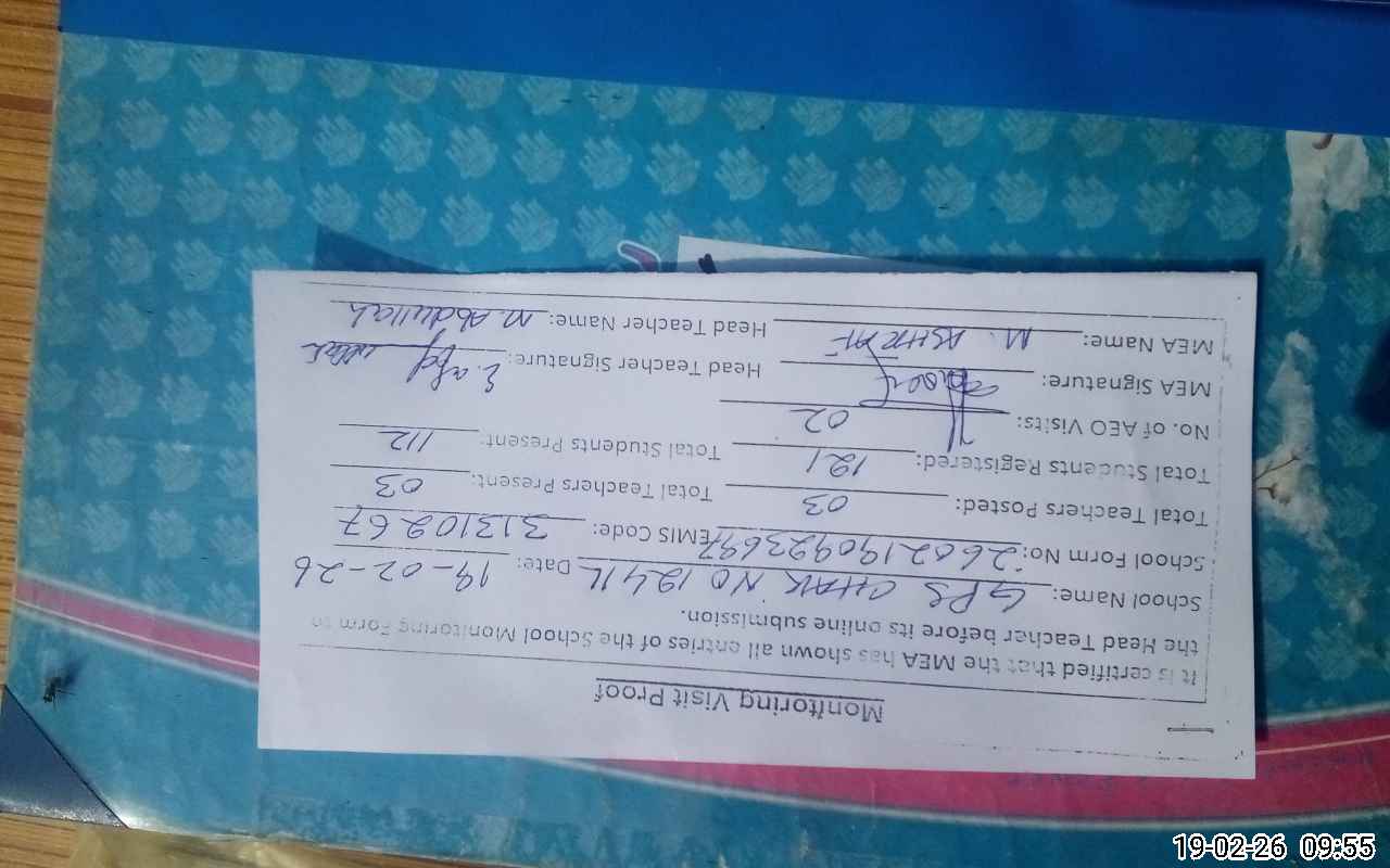 | Name: GH**** RA**** KH**** Designation: (School Headmaster's/Headmistress's) PST Phone/Cell Number: 03**** |