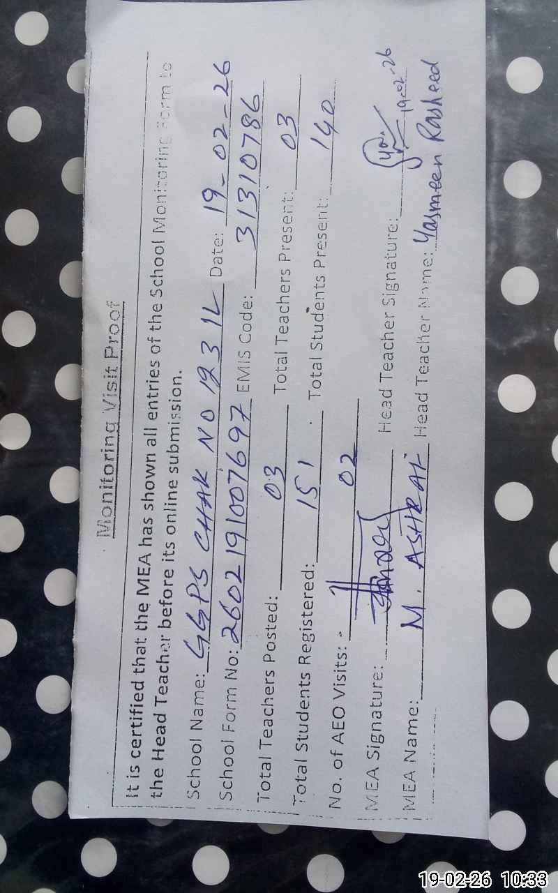 | EMIS Code: 31310786 | Name of School: GGPS CHAK NO. 123/1-L | |||