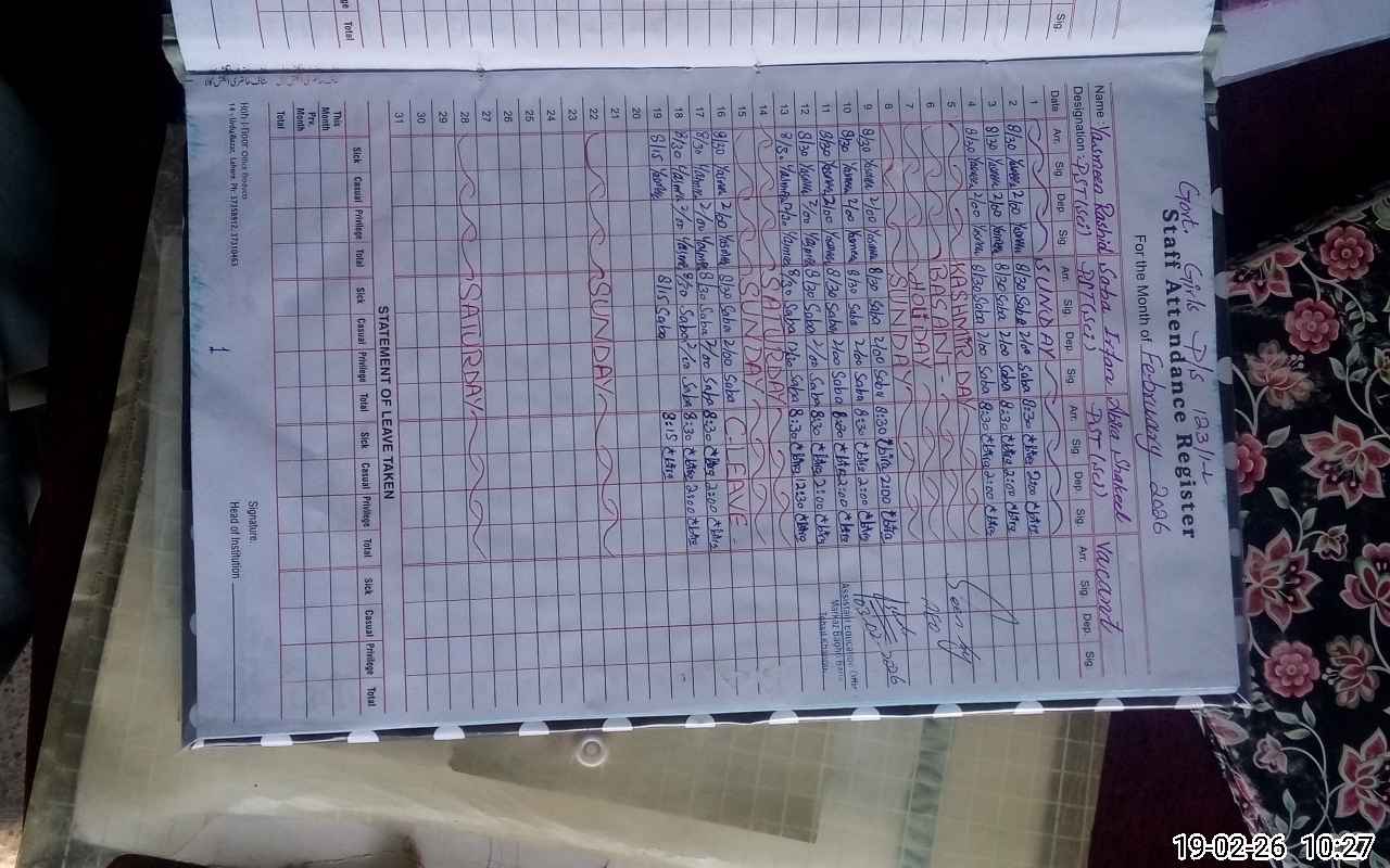 | Remarks (Use Separate Page if Required): ENROLLMENT TAKEN FROM ATTENDENCE REGISTERS OF STUDENTS ATTENDENCE OF STUDENTS CARRIED OUT BY HEAD COUNT AS PER SOP | |||||