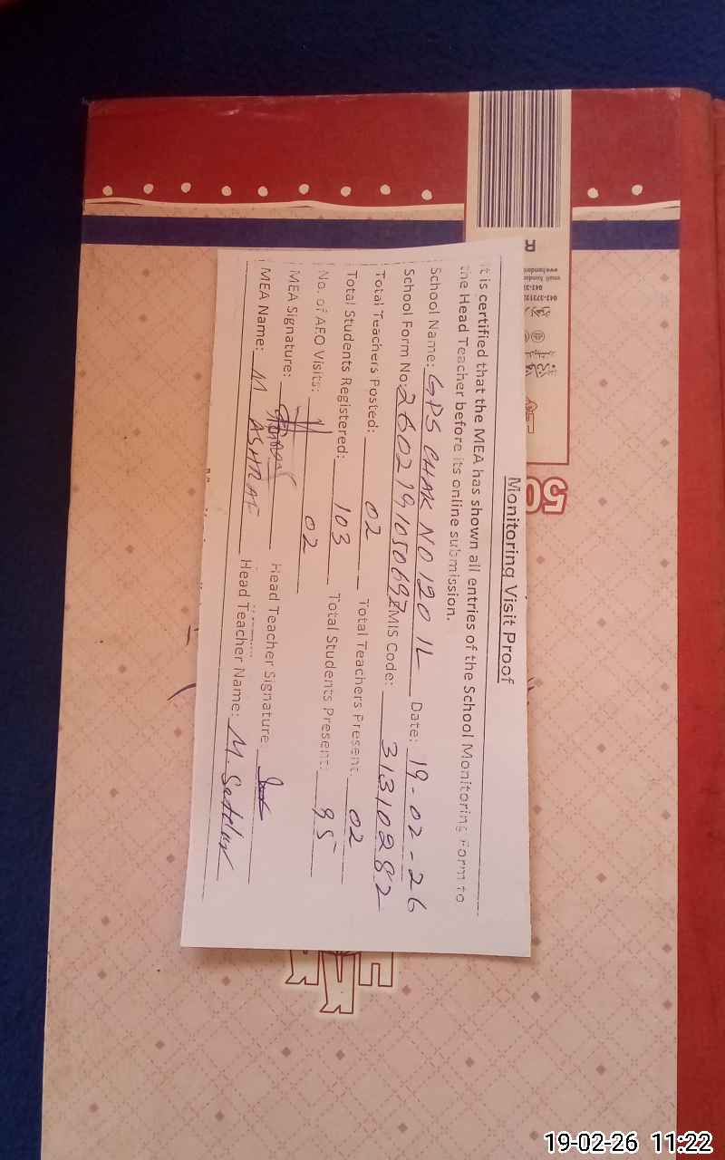 | EMIS Code: 31310282 | Name of School: GPS CHAK 120/1-L | |||