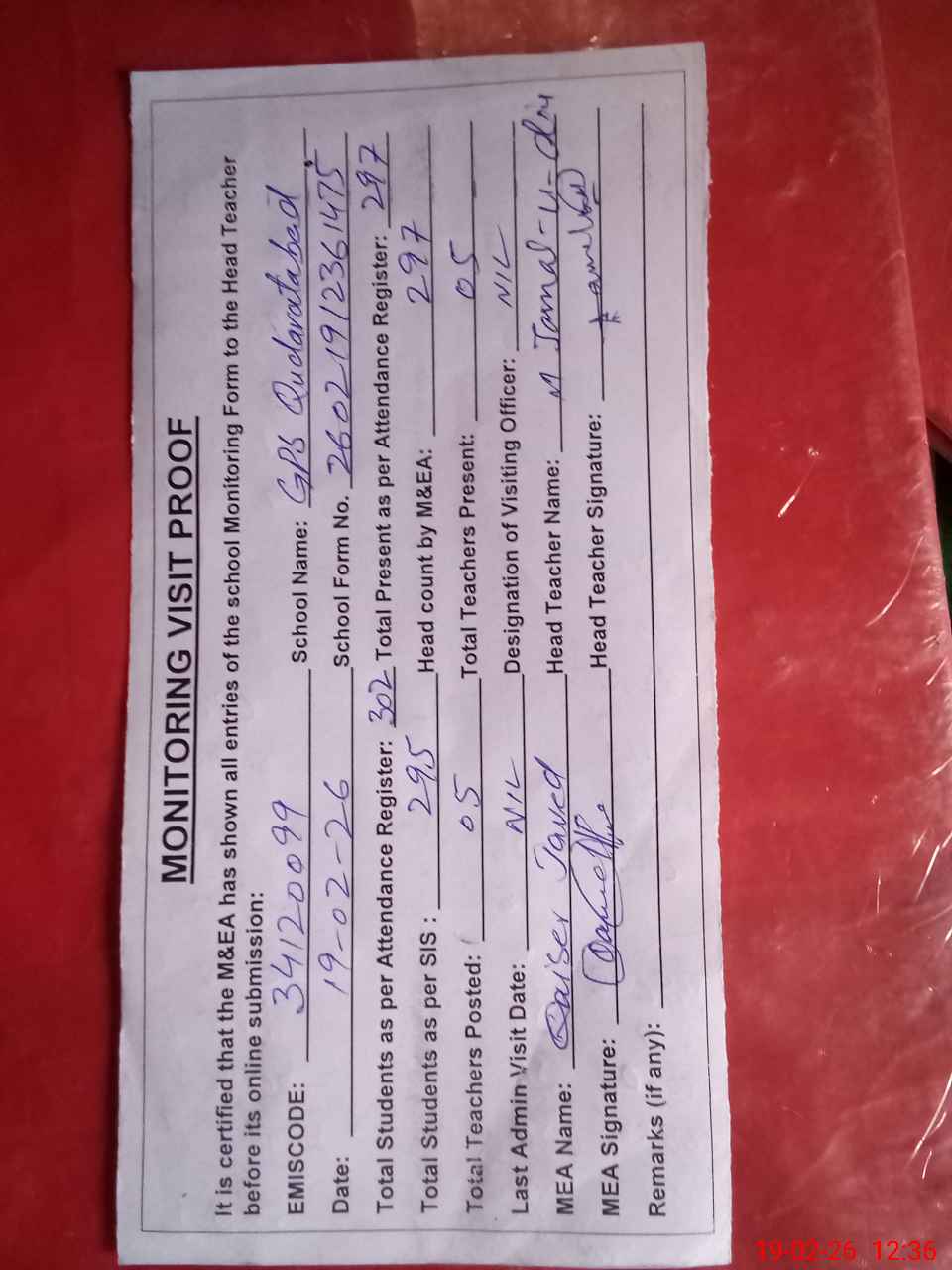 | EMIS Code: 34120099 | Name of School: GPS QUDRAT ABAD | |||