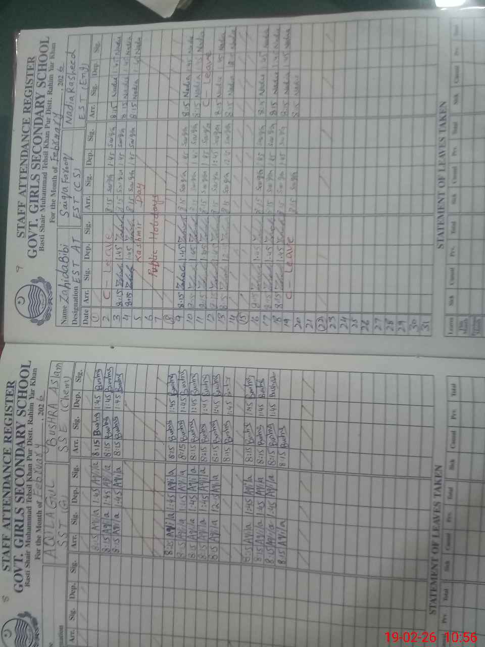 | CNIC | Full Name | Designation | R/C | Absence During Last Calender Month |