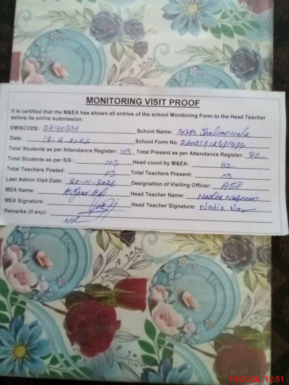 | EMIS Code: 34140434 | Name of School: GGPS JHALIAN WALA | |||