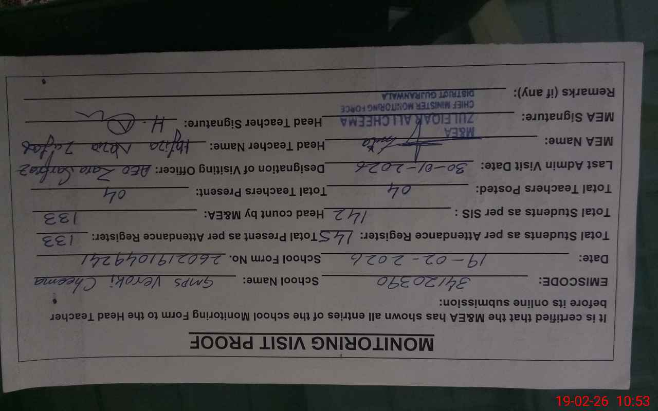 | EMIS Code: 34120390 | Name of School: GMPS VEROKI CHEEMA | |||