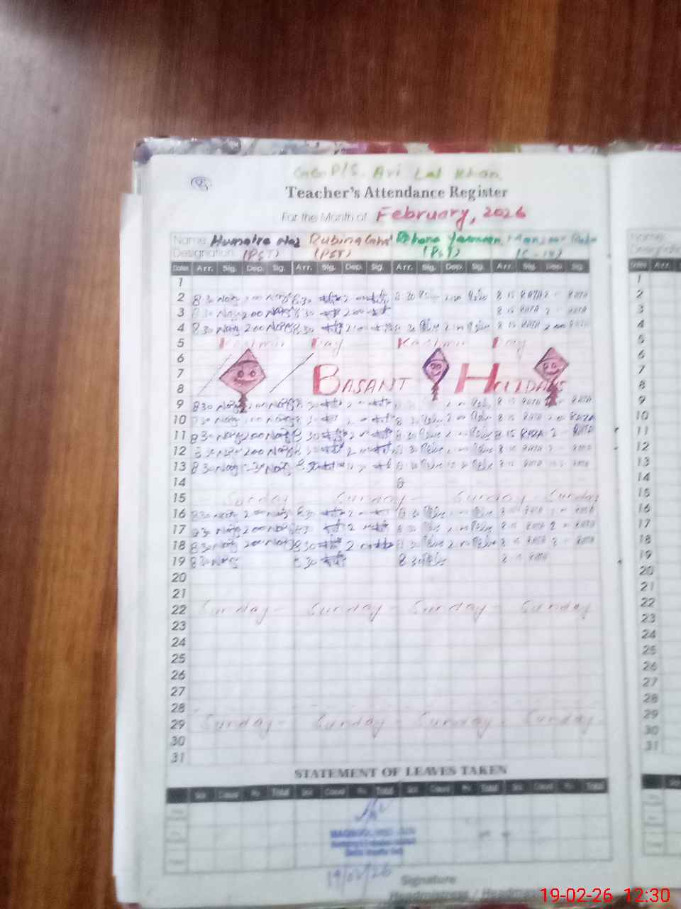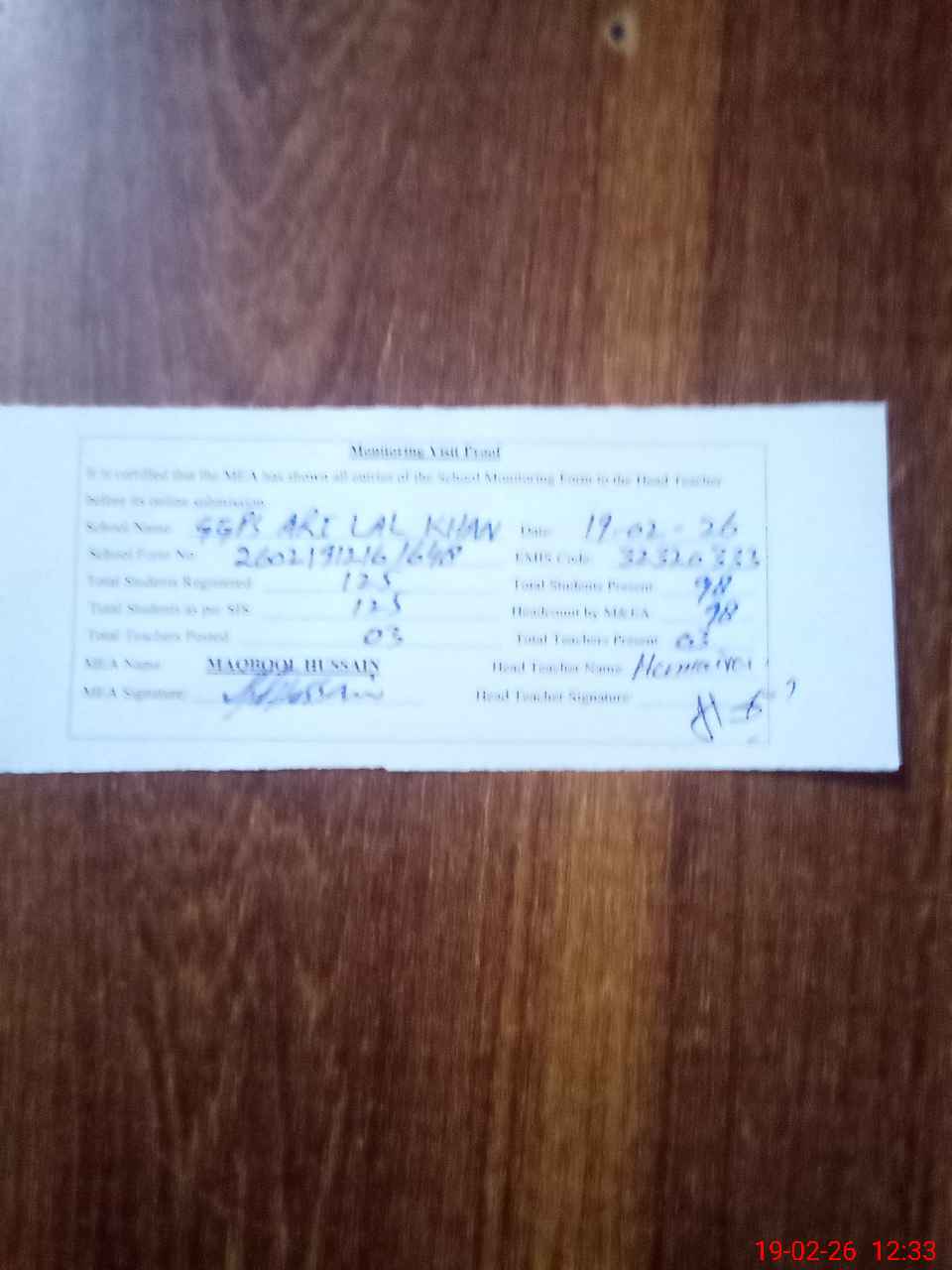 | EMIS Code: 32320333 | Name of School: GGPS ARI LAL KHAN | |||