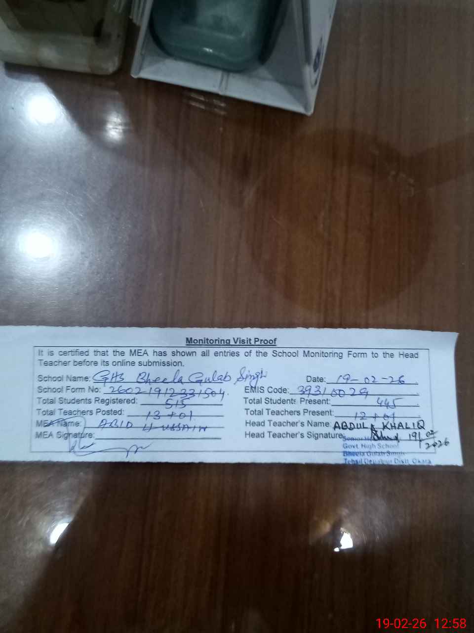 | EMIS Code: 39310029 | Name of School: SHAHEED IRFAN MEHMOOD GOVT. H/S BHELA GULAB SINGH | |||