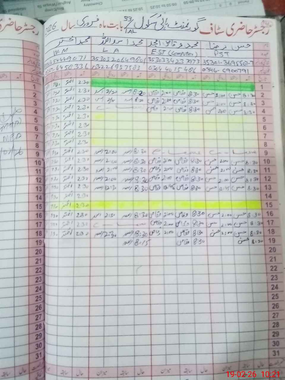 | Name: Li**** Al**** Na**** Designation: (School Headmaster's/Headmistress's) INCHARGE Phone/Cell Number: 03**** |