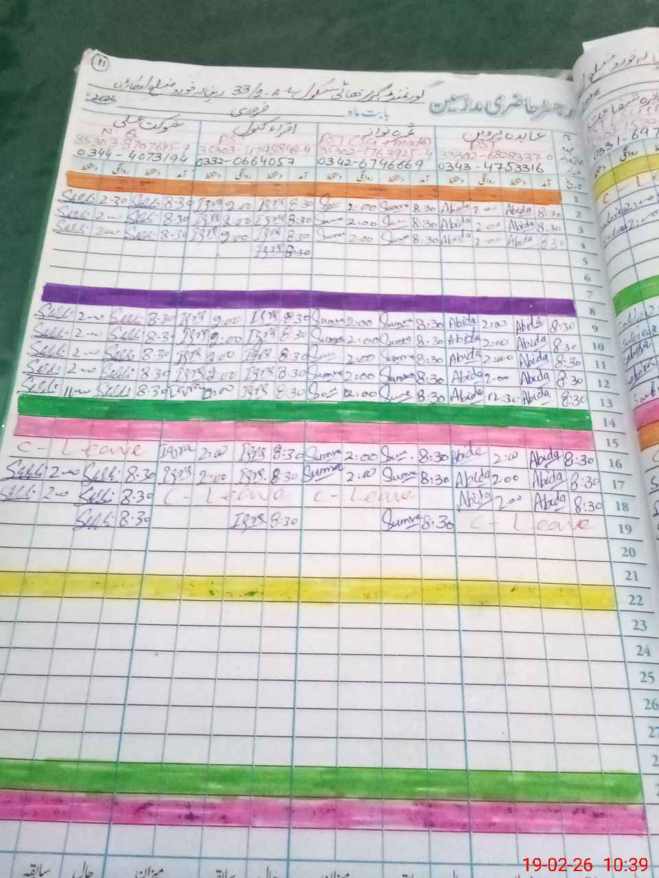 | Leave | Duty | Absent | Maternity | Medical | Ex- Pak |