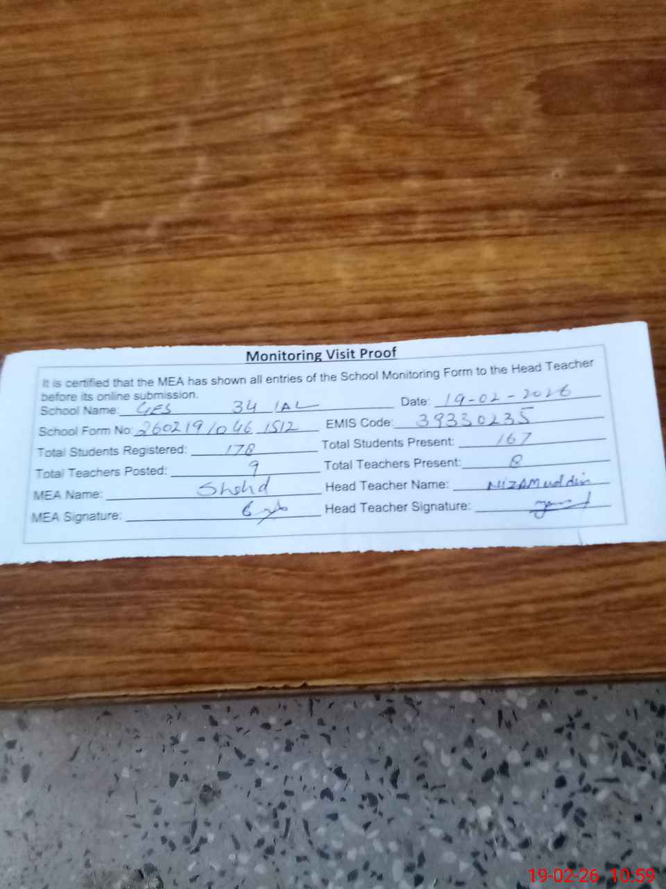 | EMIS Code: 39330235 | Name of School: GES CHAK 34/1-AL | |||