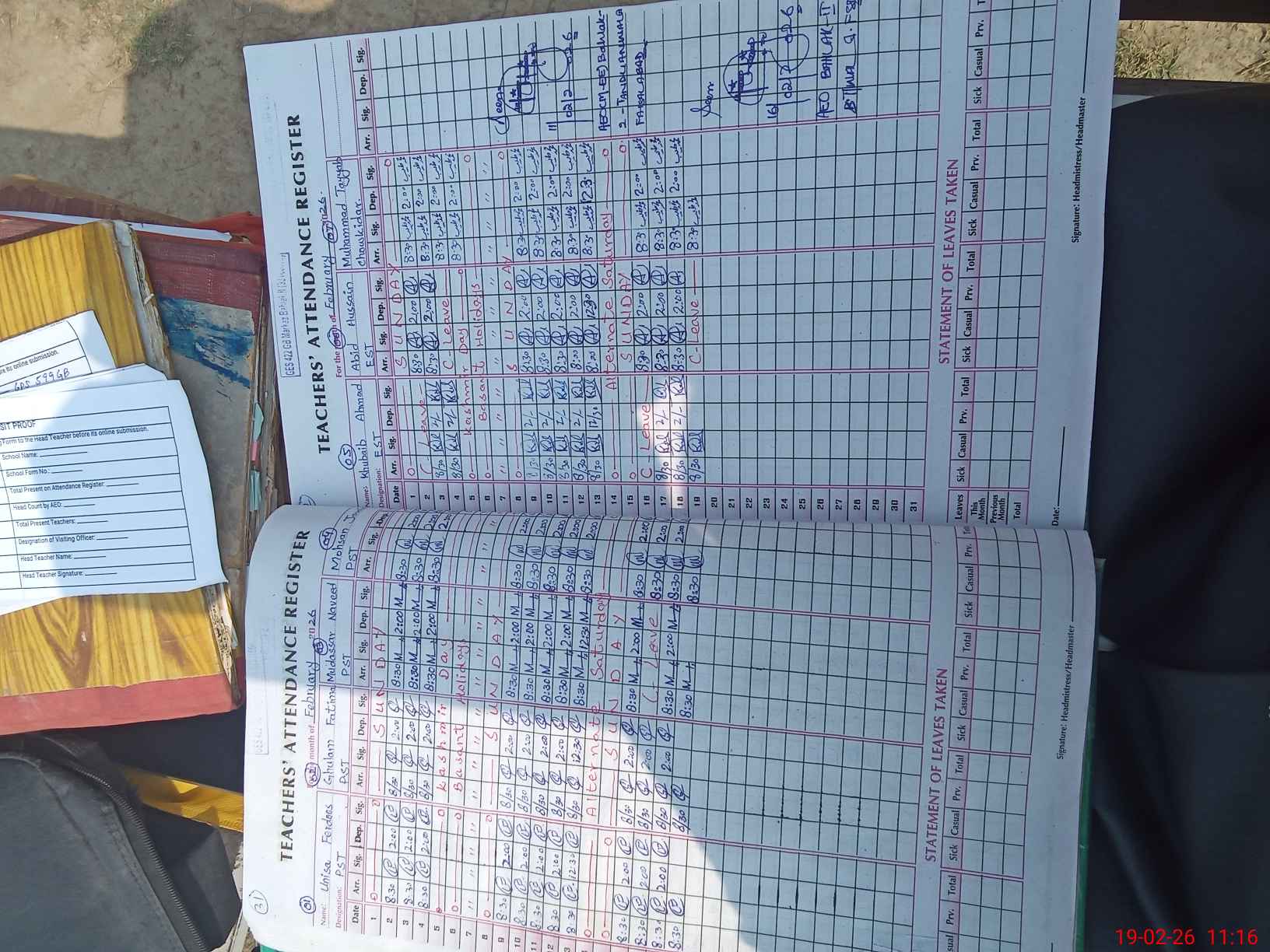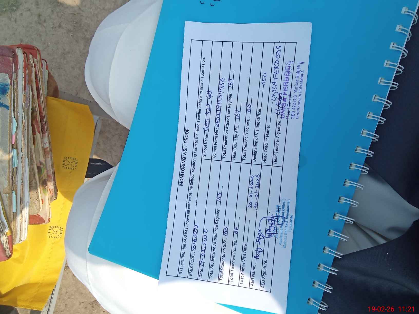 | Attendance Register | Head Teacher | MEA with School | Visit Proof |