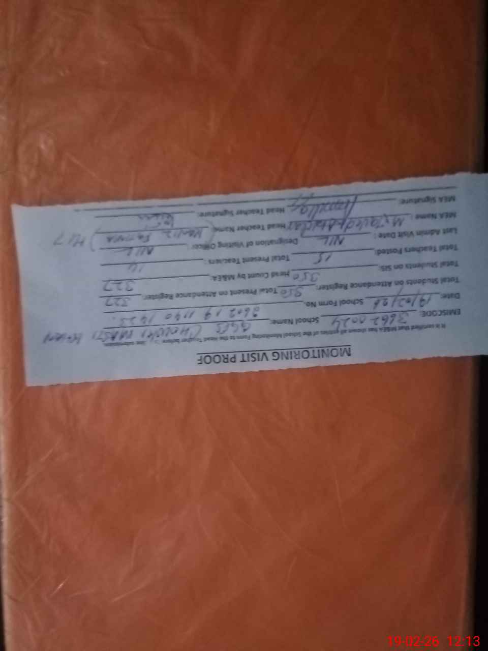 | Attendance Register | Head Teacher | MEA with School | Visit Proof |