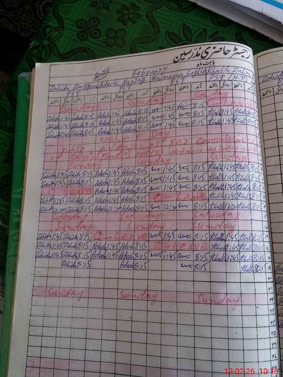 | Leave | Duty | Absent | Maternity | Medical | Ex- Pak |