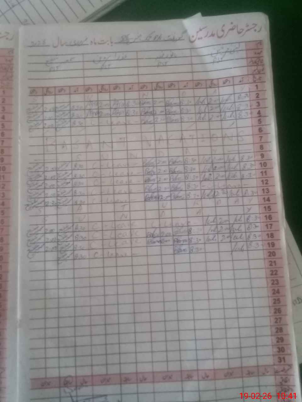 | 33**** | Az**** Pa**** | PST Arts | Regular | 0 | 0 | 0 | 0 | 0 | 0 | 0 | 0 | 0 | Absent (Un-Authorized) |
