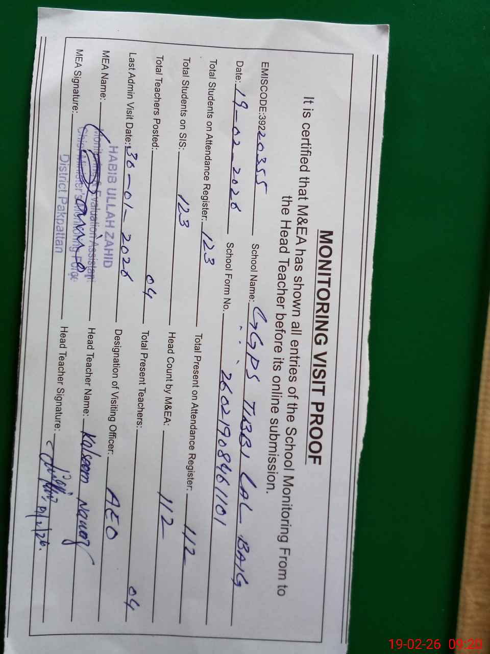 | EMIS Code: 39220355 | Name of School: GGPS TIBBI LAL BAIG | |||