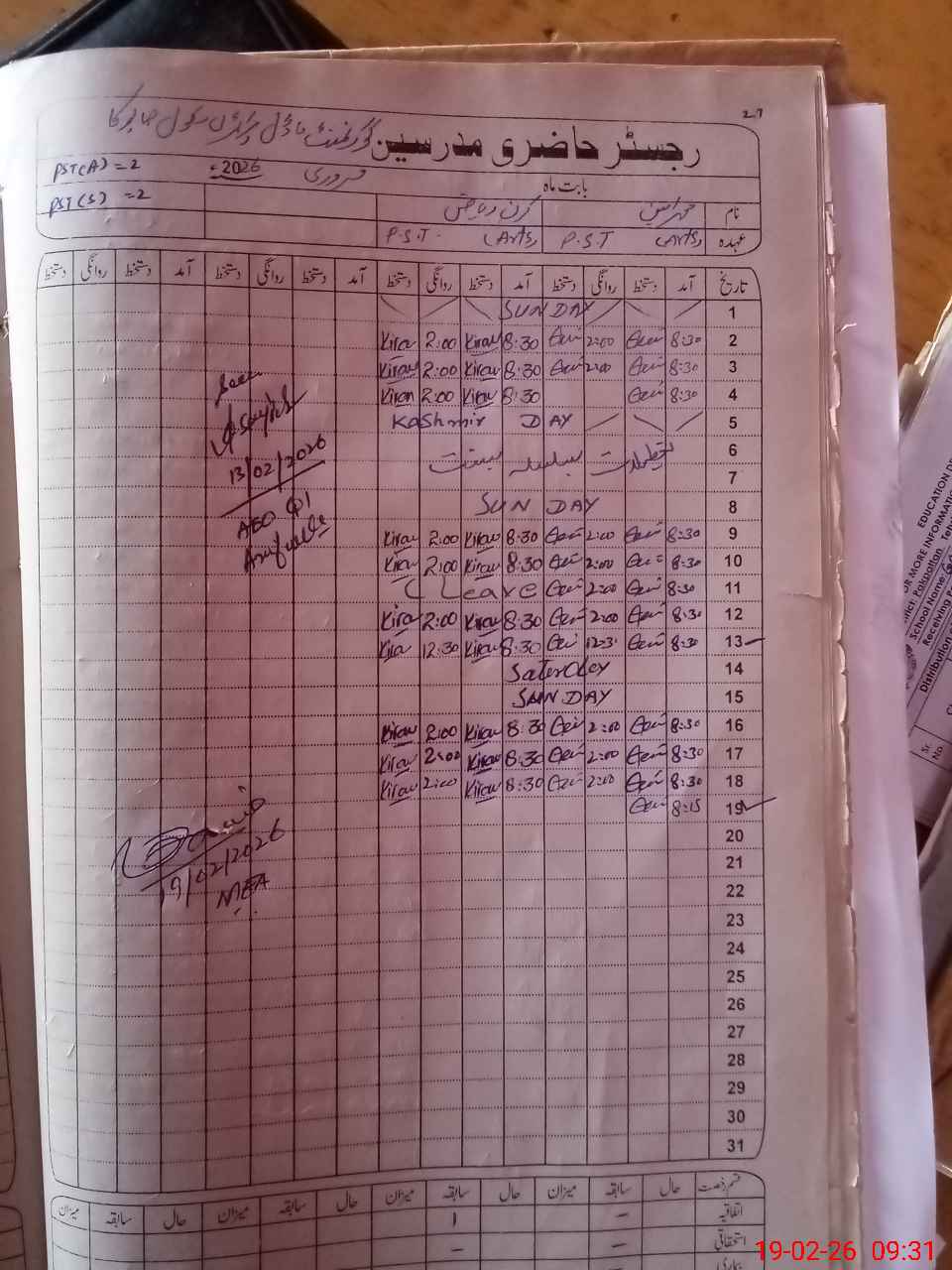 | Name: MU**** AM**** Designation: (School Headmaster's/Headmistress's) PST Phone/Cell Number: 03**** |