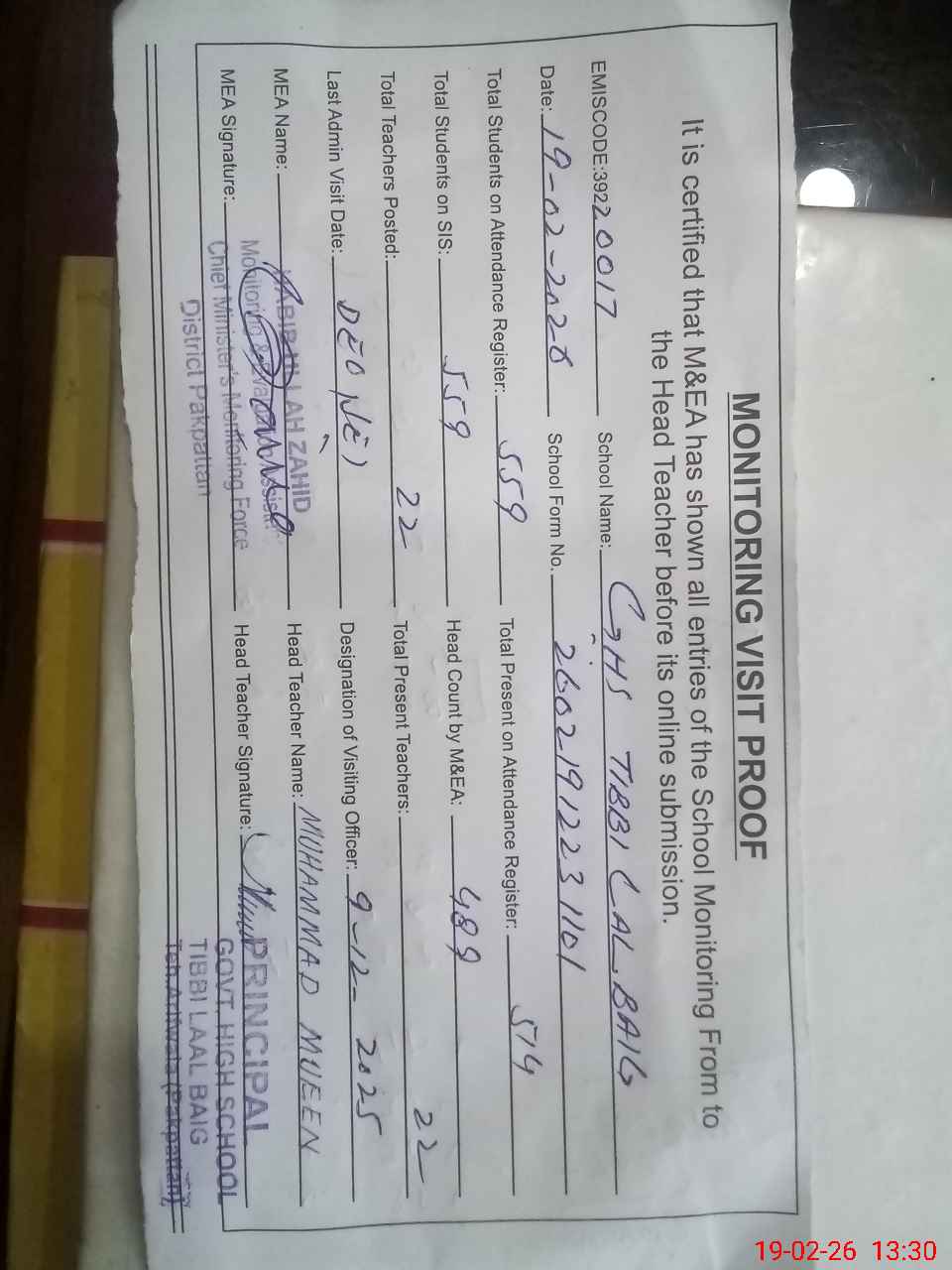 | EMIS Code: 39220017 | Name of School: GHS TIBBI LAL BAIG | |||