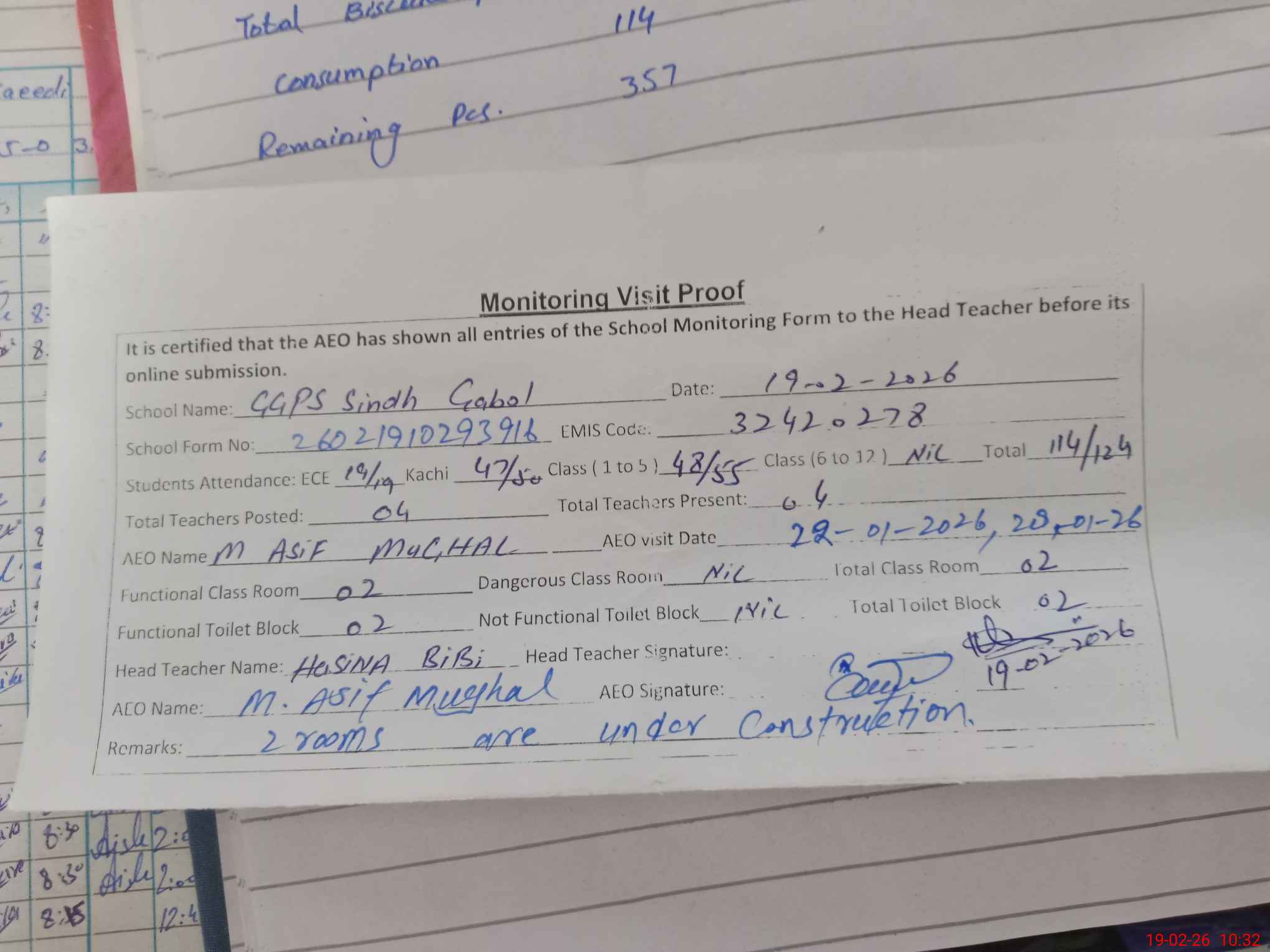 | EMIS Code: 32420278 | Name of School: GGPS SINDH GABOOL | |||