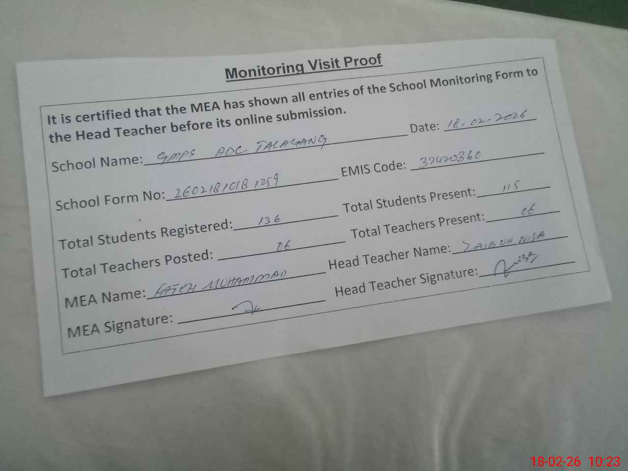 | EMIS Code: 37420360 | Name of School: GMPS ADC TALAGANG | |||