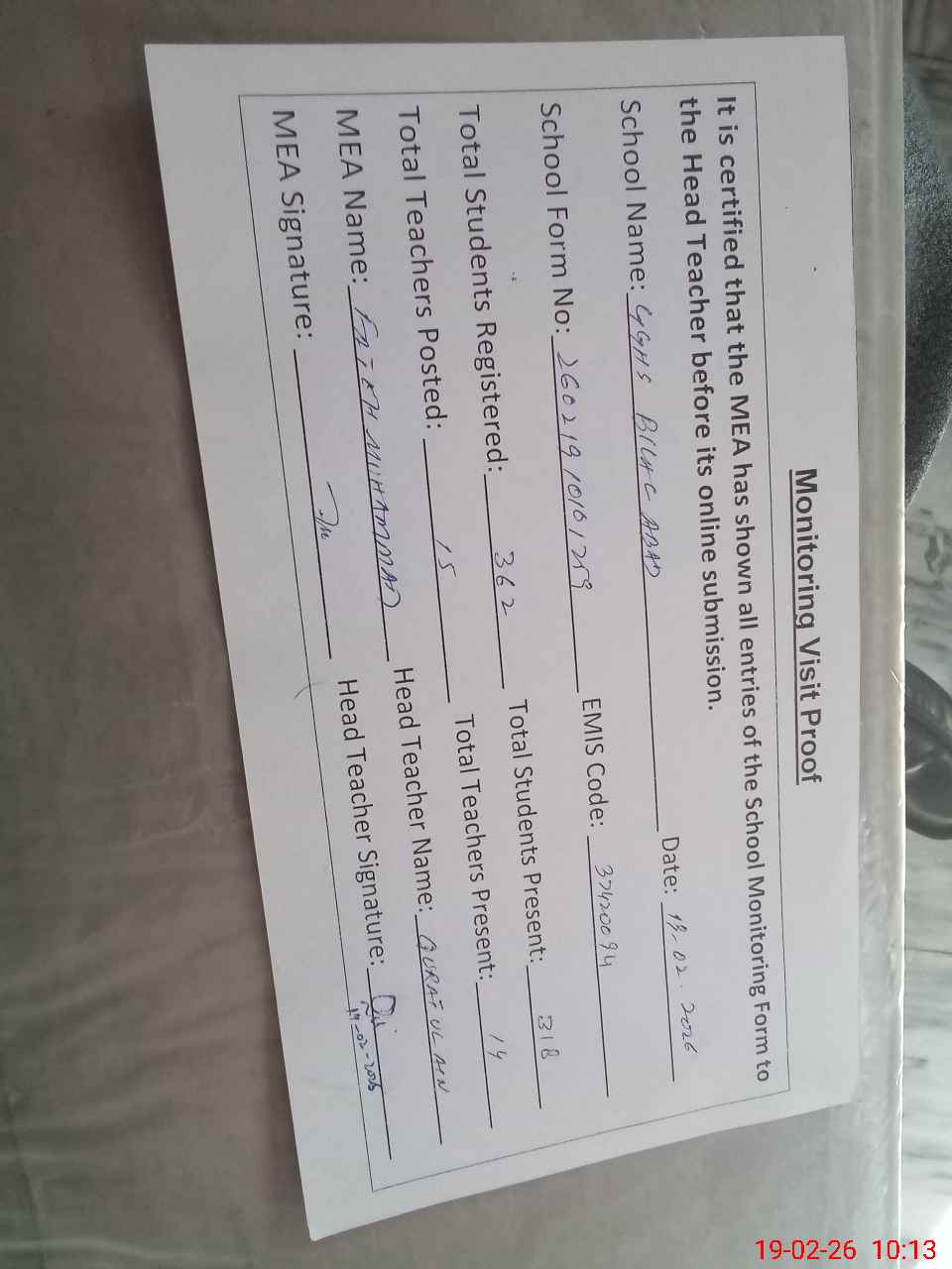 | EMIS Code: 37420094 | Name of School: GGHS BILALABAD | |||