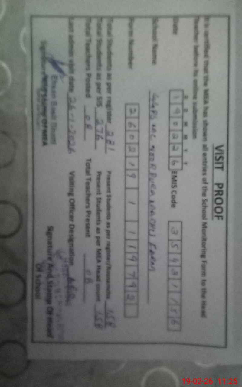 | Certified that this School was Inspected by the Undersigned MEA/DMO Today and the Information Stated Above is as Per Record. | |||||